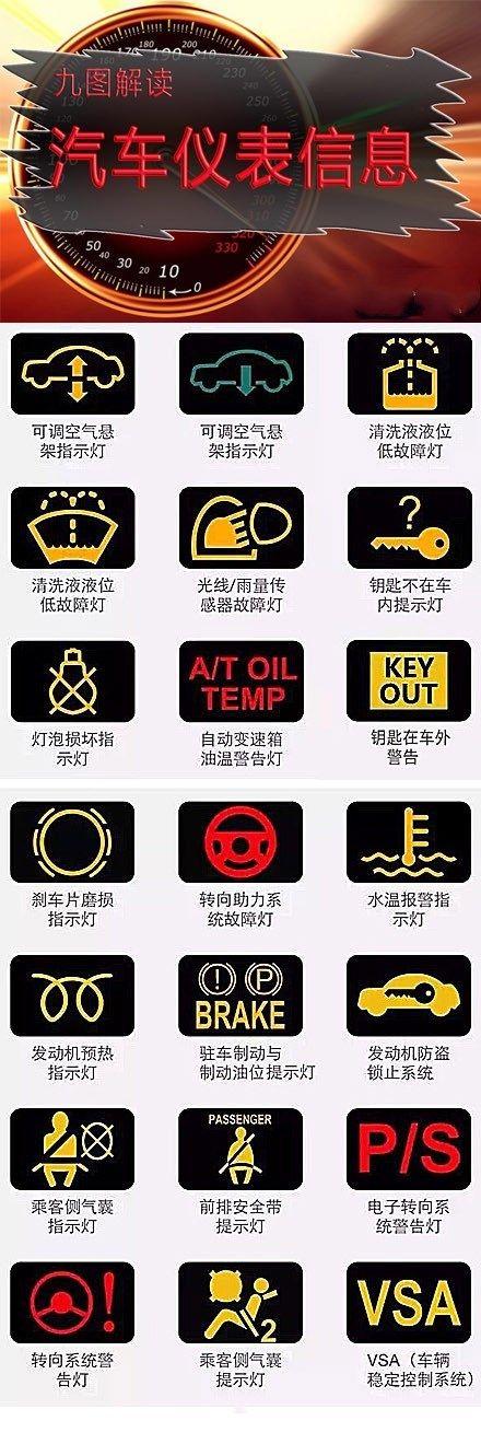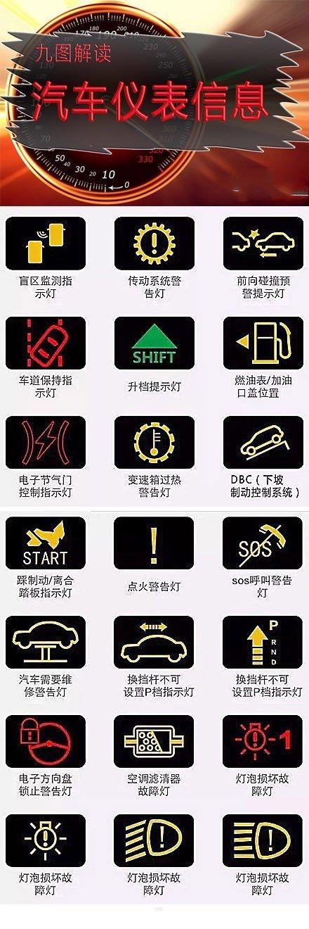 今天小编就为大家收集了一个汽车仪表图标大全,有车的朋友不妨收藏起来,闲时多看几次,熟悉了对你的行车安全就有了更大的保障。
